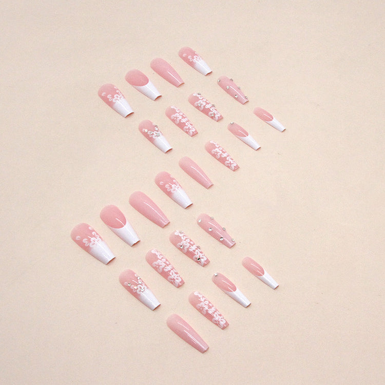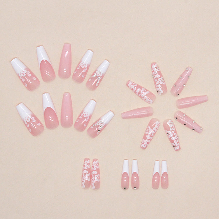 Long Ballet Diamond Long French Fake Nails