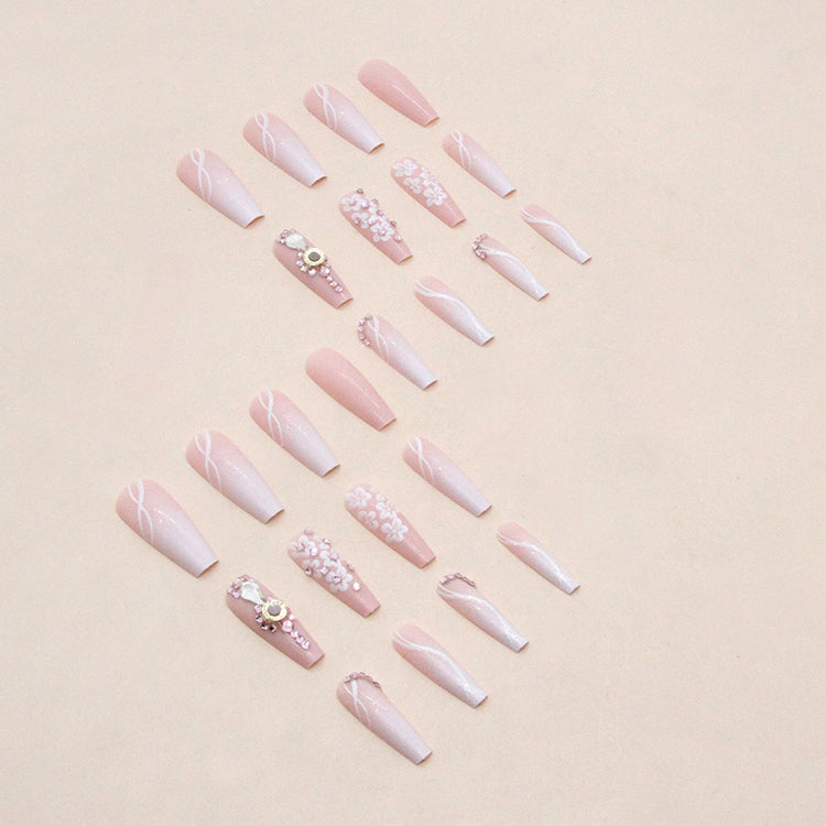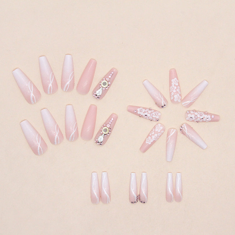 Long Ballet Gradient White Colorful Glitter Tender Girl Fake Nails Wearable