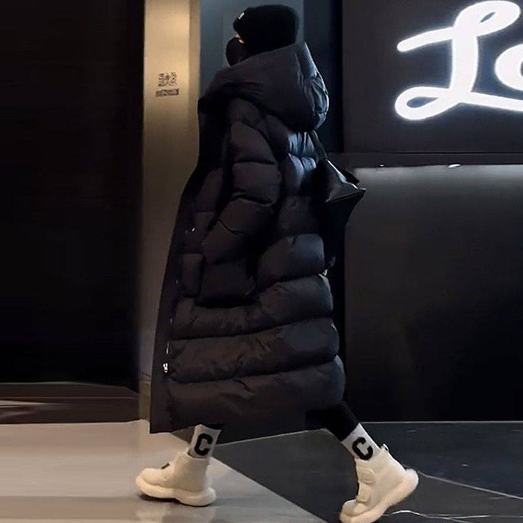 Down Jacket Women's Long Below-the-knee Length Winter Loose Hooded Thickened