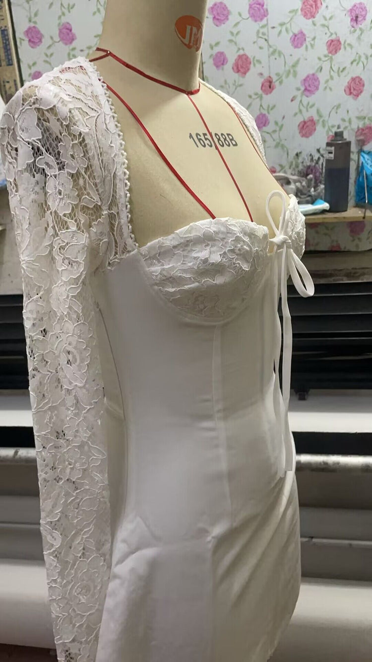 European And American Style Lace Long Sleeve Dress Backless Lace Up
