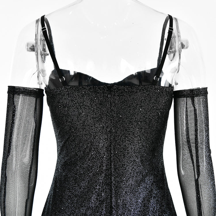 Women's Mesh Hot Silver Sling Tube Top Sexy Dress